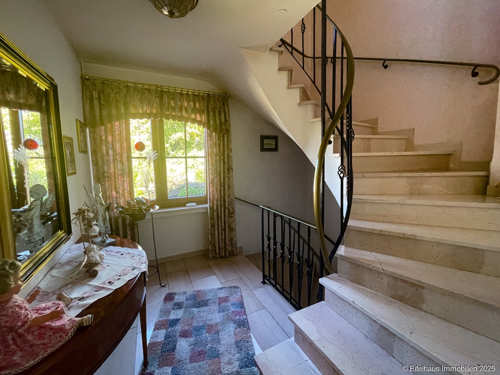 • Treppenhaus mit Marmorstufen, Geländer aus Metall